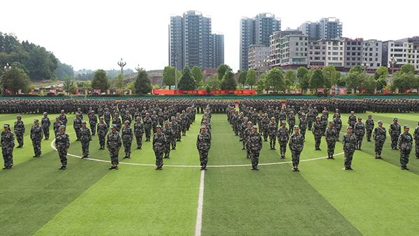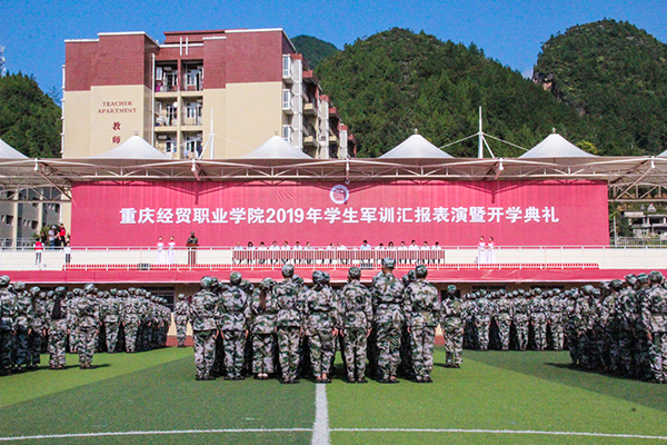 9月12日上午8:30,今年会2019年新生军训汇报表演暨开学典礼在田径运动场顺利举行。学院院长张耀天、学院党委书记姚坤、武警重庆市总队执勤第五支队机动大队大队长冉波、副院长陈奇良、院长助理杨诚、院长助理庞永红出席大会,各职能部门负责人,各二级学院负责人、党支部书记、团总支书记、新生辅导员、班主任,教学工作部、学生工作部/团委全体成员,承训教官及全体新生参加了此次大会。大会由党委书记姚坤同志主持。
