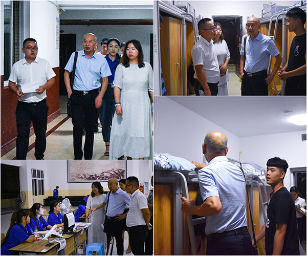 8月25日晚,学院党委书记姚坤,党委委员、副院长陈奇良,党委委员、院长助理杨诚,院长助理庞永红及相关部门负责人一行分别前往二号、三号、四号和五号学生公寓楼,走访2019级新生宿舍,看望并慰问新同学,了解学生需求,现场为学生排忧解难。