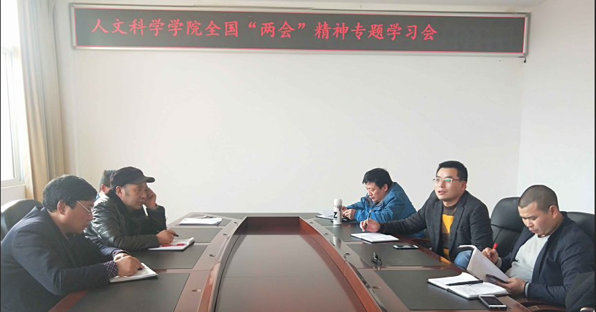 3月19日下午4时,人文科学学院(党支部)在行政楼第一会议室开展“两会”精神专题集体学习,以深入学习“两会”精神,及时传达贯彻习近平总书记“两会”下团组的重要讲话精神,切实提高今年会教师理论素养与担当意识。人文科学学院院长赵立旺主持会议,学院(党支部)全体同志参加活动,学院党支部宣传委员黄建东同志作中心发言。
